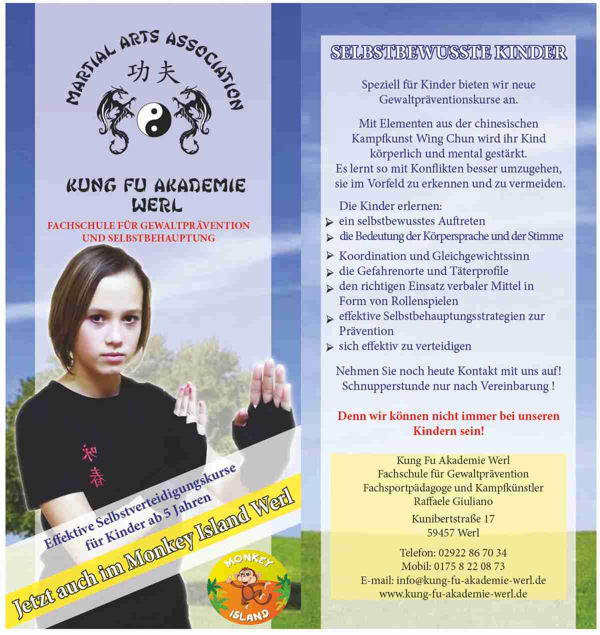 Die Kung Fu Akademie Werl macht euch fit für die Straße.Neu! Kleingruppentraining und Spezielle Workshops am Wochenende für Frauen und Mädchen ab 14 Jahren, es werden einfach zu erlernende Techniken aus dem Wing Chun Unterrichtetet und Trainiert.